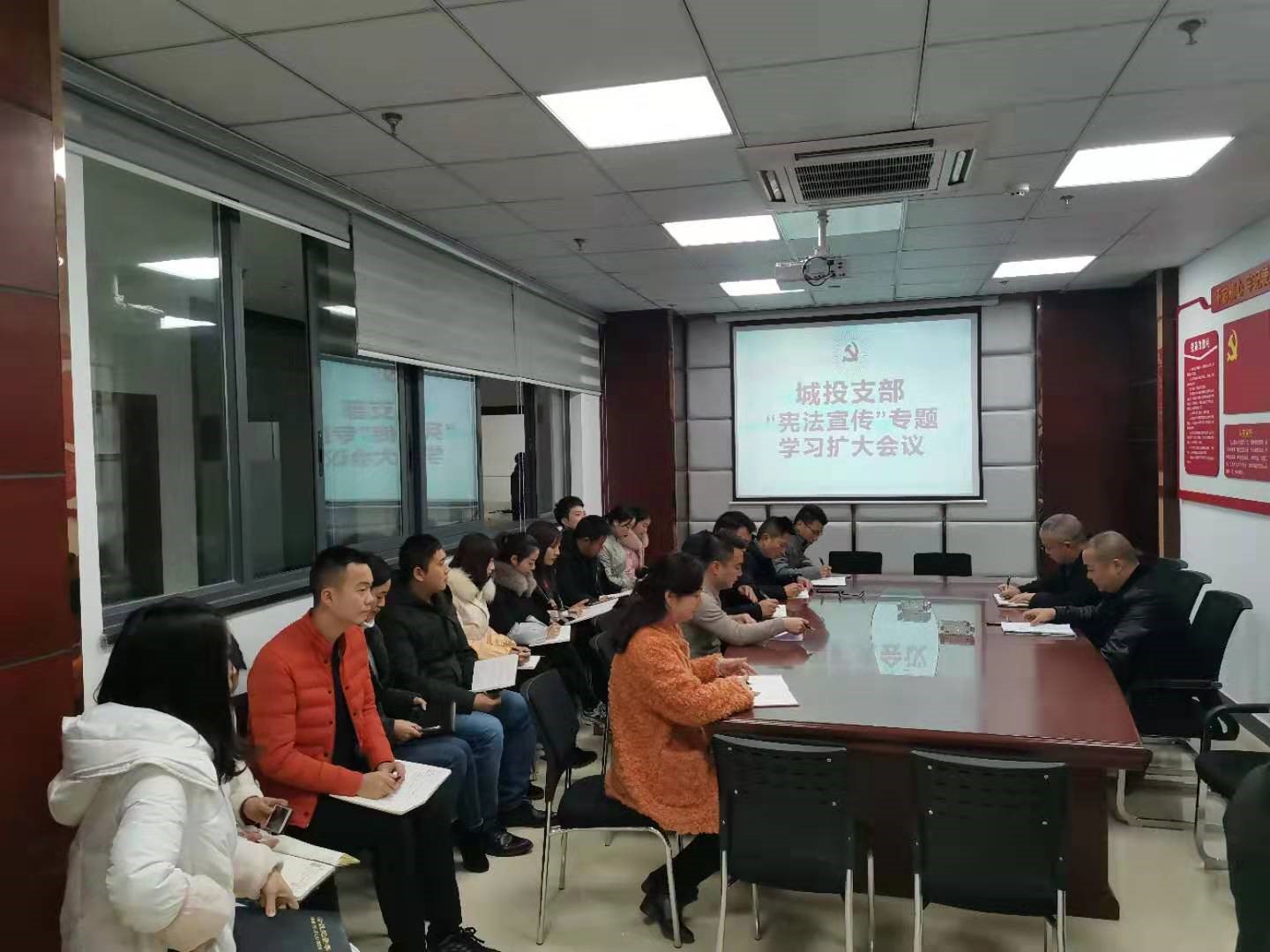 2019年12月5日上午,城投支部組織城投公司、廣源達(dá)公司員工開(kāi)展了憲法宣傳專(zhuān)題學(xué)習(xí),會(huì)上,黨支部副書(shū)記譙棣升領(lǐng)學(xué)了習(xí)近平總書(shū)記關(guān)于憲法重要論述、新中國(guó)憲法發(fā)展歷程、憲法的地位和作用等重要內(nèi)容。