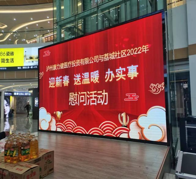 2022年1月25日,瀘州康力健醫(yī)療投資有限公司攜手荔城社區(qū)在中聯(lián)萬國商貿(mào)城舉行“迎新春 送溫暖 辦實事”慰問活動??赐⑽繂柹鐓^(qū)困難群眾,并給他們帶去了慰問物資及節(jié)日的問候與祝福,讓他們感受到關(guān)懷和溫暖。