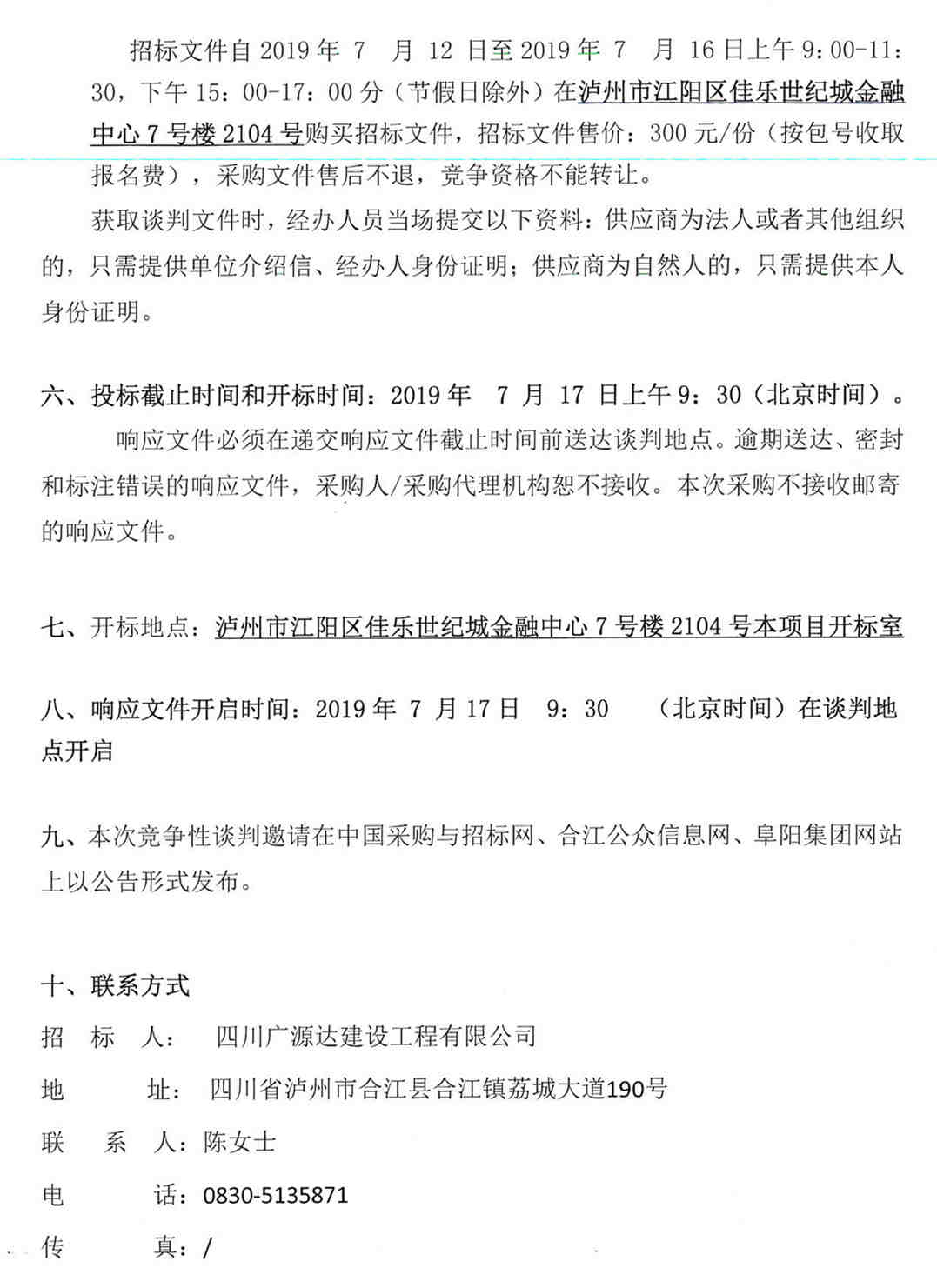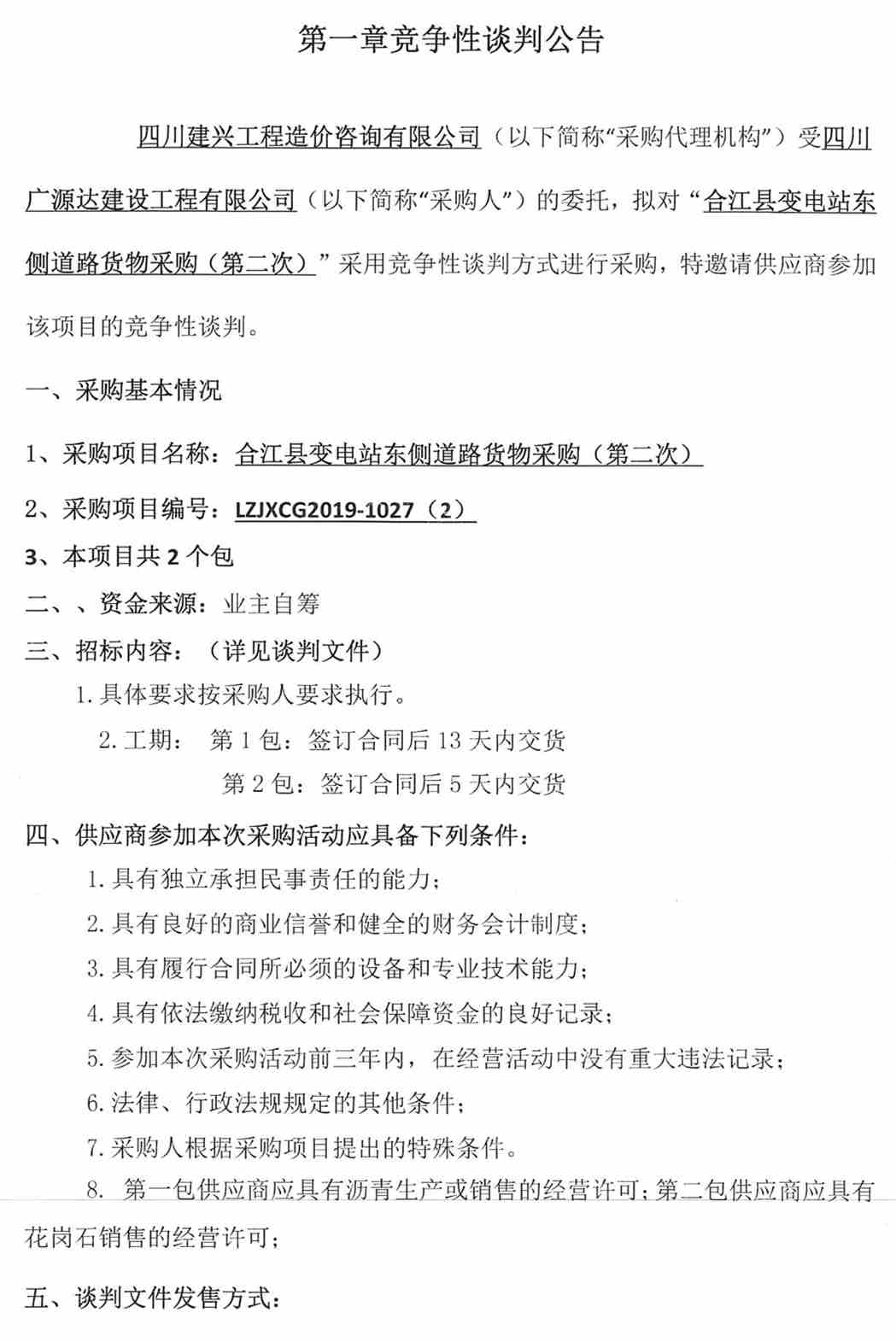 四川廣源達(dá)建筑工程有限公司合江縣變電站東側(cè)道路貨物采購公告(第二次)