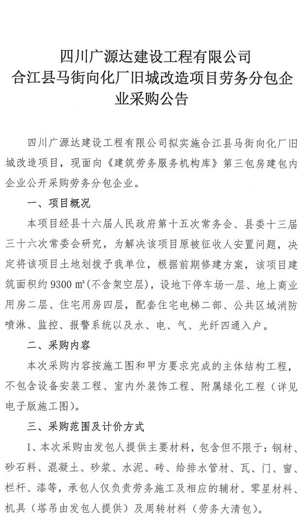 四川廣源達(dá)建設(shè)工程有限公司 合江縣馬街向化廠舊城改造項(xiàng)目勞務(wù)分包企業(yè)采購公告.doc