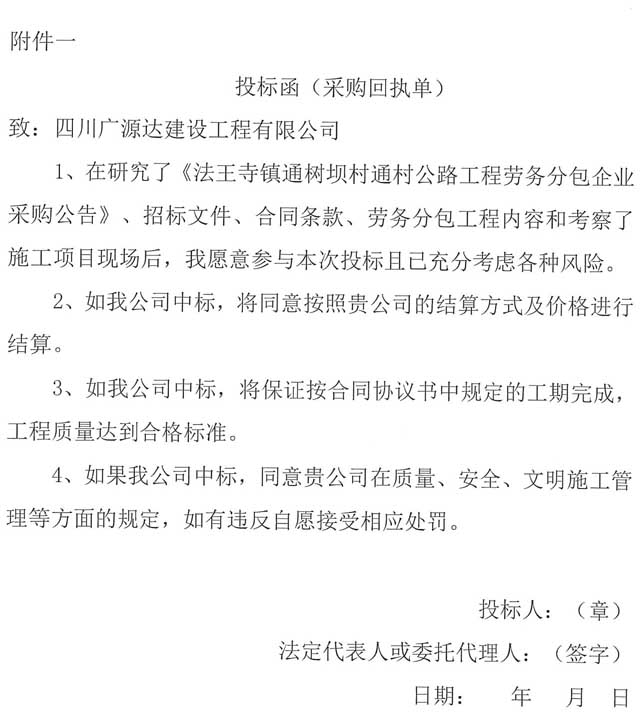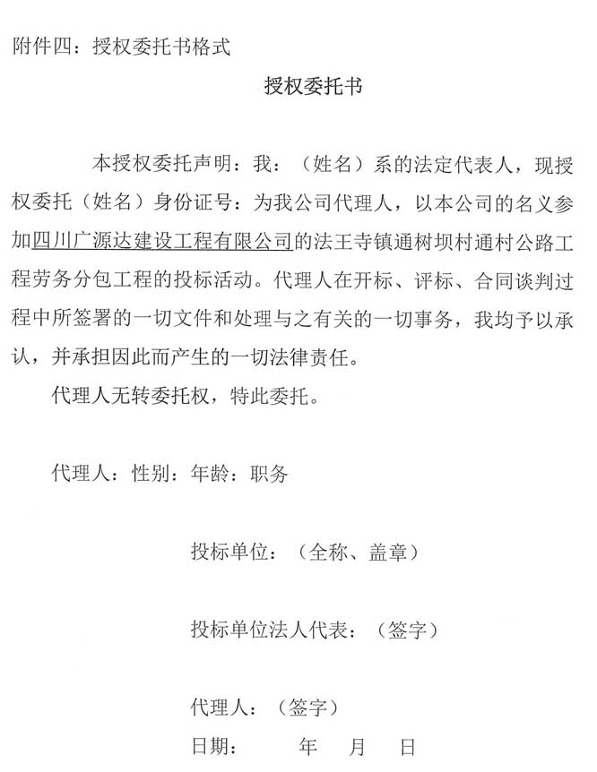 四川廣源達建設(shè)工程有限公司法王寺鎮(zhèn)通樹壩村通村公路工程勞務(wù)分包企業(yè)采購公告.doc