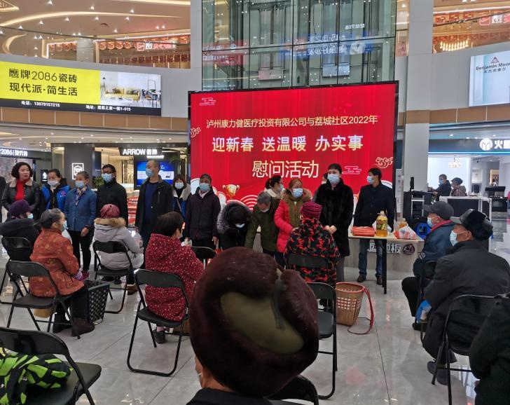 2022年1月25日,瀘州康力健醫(yī)療投資有限公司攜手荔城社區(qū)在中聯(lián)萬國商貿城舉行“迎新春 送溫暖 辦實事”慰問活動??赐⑽繂柹鐓^(qū)困難群眾,并給他們帶去了慰問物資及節(jié)日的問候與祝福,讓他們感受到關懷和溫暖。