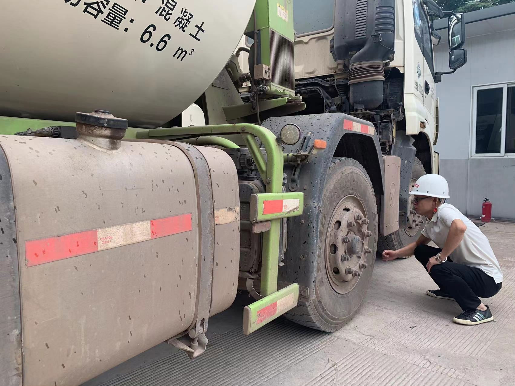 在國瑞商貿(mào)公司商砼站的停車場內(nèi), 總有一個身材清瘦、 架著一副眼鏡的人對即將開展運輸任務(wù)的罐車進行安全檢查, 并對司機開展駕駛前的安全教育, 他從擔(dān)任公司車隊長兼生產(chǎn)調(diào)度以來, 始終堅守著車輛出發(fā)前的檢查工作, 他就是國瑞黨支部委員王平。