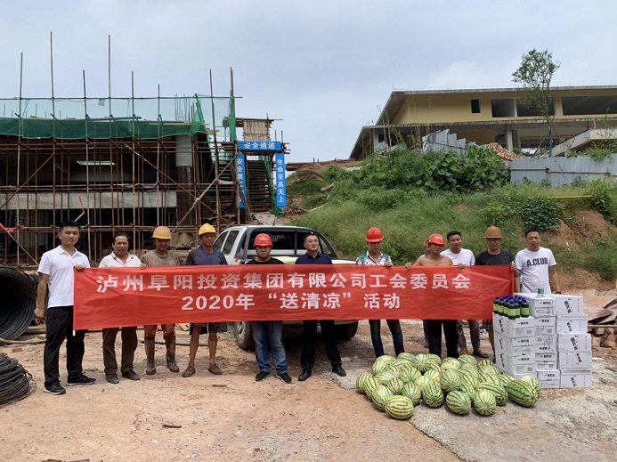 近日,合江持續(xù)高溫,為保障一線人員的身體健康,確保各項生產(chǎn)工作安全有序開展,8月11日,集團公司黨委委員、工會主席袁健,帶領(lǐng)集團黨群紀檢工作部、綜合部先后深入鑫晟學府、殯儀中心、龍掛山景區(qū)等十多個項目建設現(xiàn)場,看望慰問奮戰(zhàn)在一線的工作者,為他們送去清涼物資和關(guān)心關(guān)愛。
